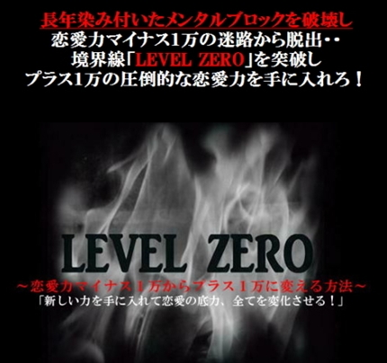 恋愛相談で悲痛な悩みから生まれた、恋愛プログラム■「LEVEL ZERO」 恋愛の防御とは、女性に対する考え方を変える事と 自分自身に対して思考を180度変えると言う事です。 今まで、あなたが美化し過ぎていた女性への価値観を破壊していきます。