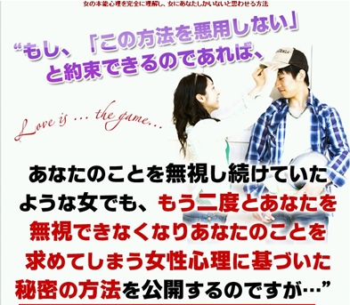 メールの返信すらくれない女をいとも簡単に復活させて彼女にする方法 男と女の恋愛の秘密ともいえる目からうろこの恋愛理論が書かれている。